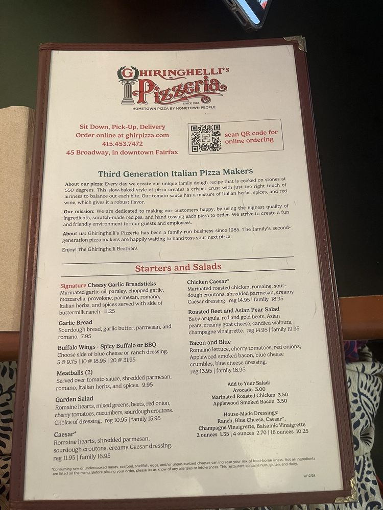 Located in Fairfax, CA, Ghiringhelli’s Pizzeria is a must-visit for pizza enthusiasts looking for a casual dining experience. This pizzeria offers a range of vegan and vegetarian options, making it a great choice for those with dietary restrictions. With amenities like free Wi-Fi, outdoor seating, and gender-neutral restrooms, Ghiringhelli’s provides a comfortable and inclusive atmosphere for customers. The menu features a variety of delicious pizza options, perfect for groups or families looking for a satisfying meal. Whether you're dining in, taking out, or getting delivery, Ghiringhelli’s Pizzeria ensures a convenient and enjoyable experience for all patrons. Don't miss out on the opportunity to try their delectable pizzas and enjoy the inviting ambiance at Ghiringhelli’s Pizzeria.